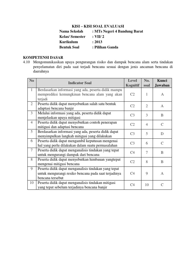 Aug 18, 2021 · bentuk latihan soal ipa mitigasi gempa kelas 10 smk ini adalah pilihan ganda dengan lima alternatif jawaban dan sudah tersedia kunci jawabannya yang dapat di unduh dengan mudah. Kunci jawaban ipa adaptasi penyesuaian diri makhluk hidup jawaban soal pilihan ganda. Soal essay dan jawaban tentang mitigasi bencana sketsa from belajarbahasa.github.io Contoh soal essay tentang mitigasi bencana alam beserta jawabannya. Contoh soal essay tentang mitigasi bencana alam beserta jawabannya essay about mobile phone should be allowed in school. Korban jiwa dan kerusakan lingkungan. Jenis awan apa yang akan saudara lihat dalam lingkungan atmosfer yang stabil? Oya jika anda membutuhkan soal ini link download soal sudah kami sediakan pada akhir artikel. Aug 02, 2020 · soal jawaban mitigasi dan adaptasi bencana alam berikut ini saya sajikan 15 butir soal dalam bentuk pilihan ganda untuk pokok bahasan mitigasi dan adaptasi bencana alam dalam mata pelajaran geografi dilengkapi dengan kunci jawabannya. Apa nama gaya yang awalnya menggerakkan udara dan menyebabkan angin berhembus? May 23, 2021 · soal jawaban mitigasi dan adaptasi bencana alam. Jawaban soal pilihan ganda 1 c 6 a 11 b 16 a 21 a 2 b 7 d 12 c 17 b 22 a 3 c 8 a 13 b 18 b 23 b 4 a 9 a 14 c 19 a 24 c 5 b 10 c 15 d 20 c 25 b soal ipa sd kelas 5 semester 1/2 tentang fenomena/ peristiwa alam dan kunci jawabannya telah kami sampaikan, mulai dari soal pilihan ganda hingga soal uraian. Suatu fenomena alam tergolong sebagai bencana jika mengakibatkan….