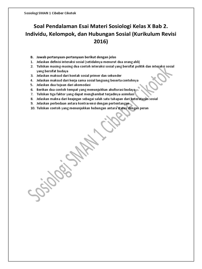 Halo adik adik yang baik, nah pada kesempatan kali ini kakak ingin membagikan beberapa contoh soal yang mungkin adik adik butuhkan, soal kali ini adalah soal essay sosiologi permintaan yang di ambil dari mata pelajaran kelas x sma/ma pada semester genap. Soal dan jawaban sosiologi tentang gejala sosial. Contoh soal essay sosiologi peminatan kelas x semester 2 kurikulum 2013 beserta jawaban yang sedang anda baca ini, berisikan materi yang sama dengan soal pg sosiologi peminatan kelas 10 semester genap k13 bagian pertama, yaitu soal tentang gejala sosial dalam masyarakat, dengan topik/sub pokok bahasan tentang gejala sosial dalam sosiologi. Materi sosiologi sma/ ma kelas x: June 22, 2019 mapel, sosiologi.