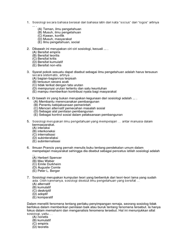 Materi sosiologi kelas x bab 1 2 fungsi sosiologi untuk mengenali gejala sosial di masyarakat kurikulum revisi 2016 lanjutan soal soal pendalaman 1. Semoga soal tersebut bisa memberi manfaat bagi para pembaca. Soal pas sosiologi kelas 10 peminatan kunci jawaban k 13 2016 menurut salah satu ahli sosiologi yaitu soerjono soekanto masalah sosial adalah suatu ketidaksesuaian antara unsur unsur kebudayaan atau masyarakat yang membahayakan kehidupan kelompok sosial. Soal pilihan ganda dan essay + jawabannya sosiologi kelas 10 bab 1 sosiologi sebagai ilmu pengetahuan ~ sekolahmuonline.com.pembaca sekolahmuonline, berikut ini kami sajikan contoh soal pilihan ganda dan essay atau uraian lengkap dengan kunci jawabannya mata pelajaran sosiologi kelas x bab 1 yang membahas tentang sosiologi sebagai ilmu pengetahuan. Mendefenisikan ilmu sosiologi pilihan ganda. Contoh soal sosiologi xi tentang masalah sosial beserta kunci jawabannya hots (pilihan ganda, essay). Untuk mengetahui pendapat masyarakat tentang partai politi yang ideal menurut pandangan mereka, seorang peneliti dalam mengumpulkan data menggunakan metode…. Materi sosiologi sma/ ma kelas x: Soal sosiologi kelas 10 tentang gejala sosial. Dengan demikian, contoh soal yang dilengkapi dengan jawabannya ini dapat membantu bagi kalian yang kesulitan mencari kunci jawaban soal materi pelajaran sosiologi tentang hubungan sosial. Materi sosiologi sma/ ma kelas x: Try out un dan kunci jawaban (2015) | bung … Pada awal maret 2020 indonesia digencarkan dengan kasus pertama covid19, sehingga publik terkena panic consumption, yang membuat handsanitizer, masker, multivitamin.