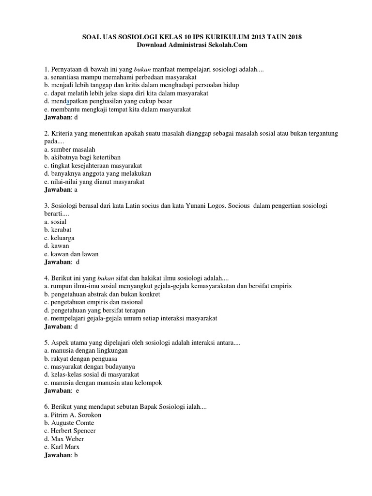 45 Soal Pilihan Ganda Pat Ukk Sosiologi Kelas 10 Sekolahmuonline Com Part 1 Sekolahmuonline from 1.bp.blogspot.com Silahkan buka soal lain tentang soal sosiologi yang ada di bawah ini. Dimana di dalamnya terdapat pengertian, faktor penyebab, jenis, contoh, serta dampak. Jika butuh soal di atas, silahkan download soal di atas melalui link berikut. Materi sosiologi kelas x bab 1 2 fungsi sosiologi untuk mengenali gejala sosial di masyarakat kurikulum revisi 2016 lanjutan soal soal pendalaman 1. Demikian soal sosiologi tentang stratifikasi sosial dan diferensiasi sosial. Nilai ini berkaitan dengan asumsi dan budaya masyarakat setempat, sehingga tidak ada peraturan tertulis mengenainya. Silahkan untuk mengerjakan soal dibawah ini: Semoga soal tersebut bisa memberi manfaat bagi para pembaca.