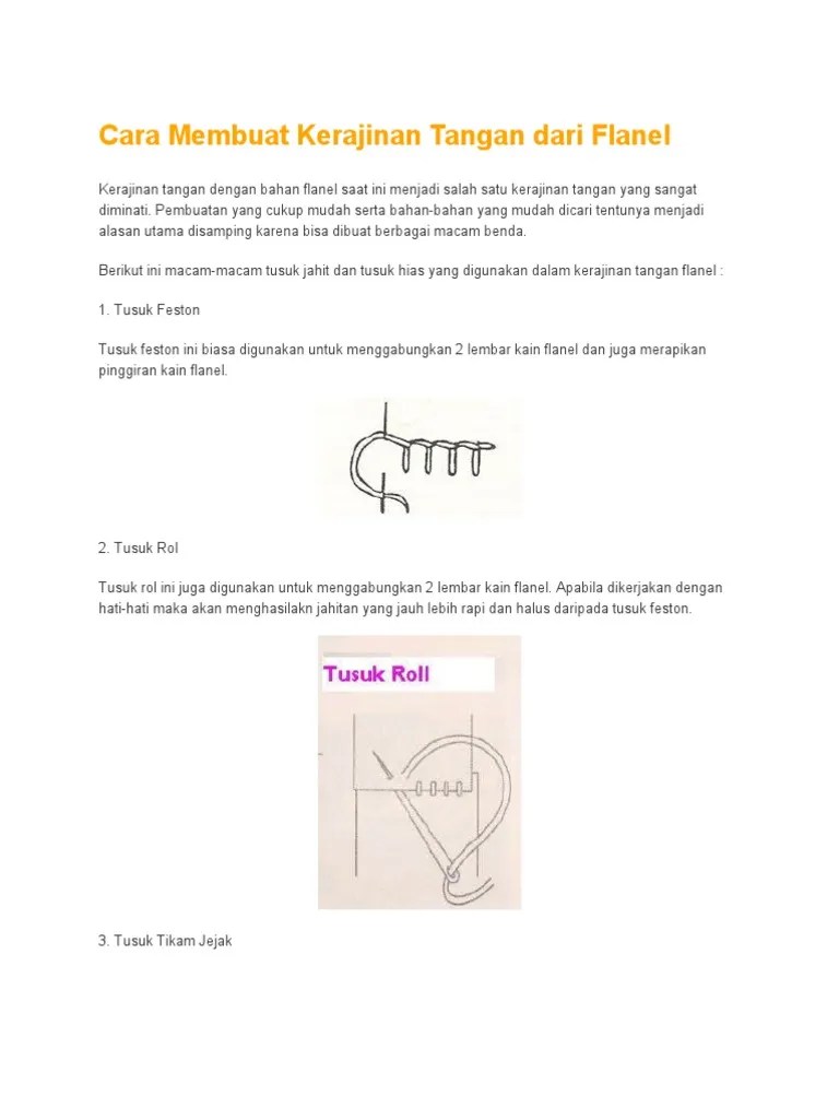 Salah satu alat menjahit yang sering digunakan adalah tusuk feston. Pada artikel ini akan dibahas cara menjahit kain flanel menggunakan jarum dan benang. Dasar desain l 38 direktorat pembinaan smk (2013) dengan kain yang sewarna dengan warna benangnya. Dalam pembuatan kerajinan dari kain flanel, tusuk feston biasanya juga dikombinasikan dengan tusuk jelujur dan tusuk tikam jejak. Tusuk feston biasa digunakan untuk menjahit tepi taplak meja, renda meja, selimut, dll, atau untuk membuat tepi kain, termasuk pakaian. Tusuk feston merupakan salah satu tusuk dasar menjahit yang paling sering digunakan untuk menjahit beraneka macam kerajinan dari kain flanel. Berikut ini gambar dan keterangan cara menjahit dengan teknik tusuk feston. Alat dan bahan untuk menyulam. Selain untuk motif, teknik ini juga berfungsi untuk membuat garis aksen dan menyambungkan kain. Bahan yang satu ini biasanya banyak digunakan sebagai kerajinan tangan. Seperti halnya tusuk feston, tusuk flanel juga digunakan untuk membuat hiasan pada kain. Tusuk feston juga sering digunakan pada proses pembuatan kerajinan dari flanel yaitu ketika menjahit tepi dan menggabungkan dua bahan misalnya ketika membuat gantungan kunci atau boneka. Oleh karena itu, kemampuan dasar menjahit dengan tusuk feston ini harus dimiliki oleh setiap orang yang ingin mempelajari.