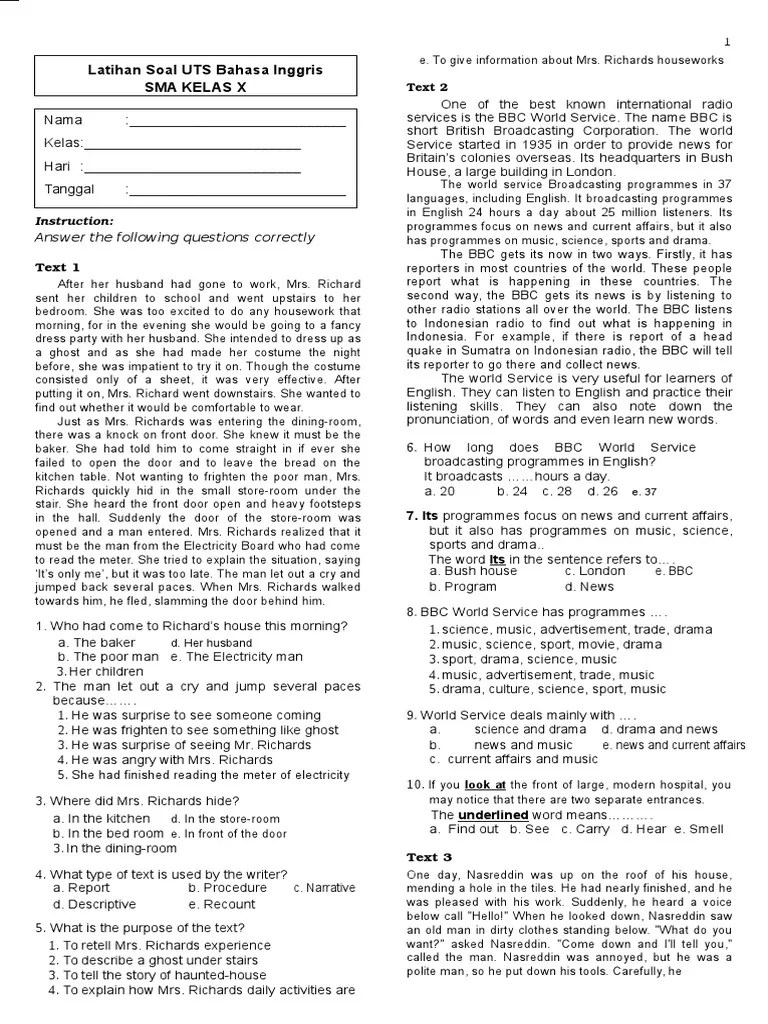 Contoh Soal Letter - Latihan Soal Uts Bahasa Inggris Kelas 12 / Siti has just got the first prize in the "bakia.